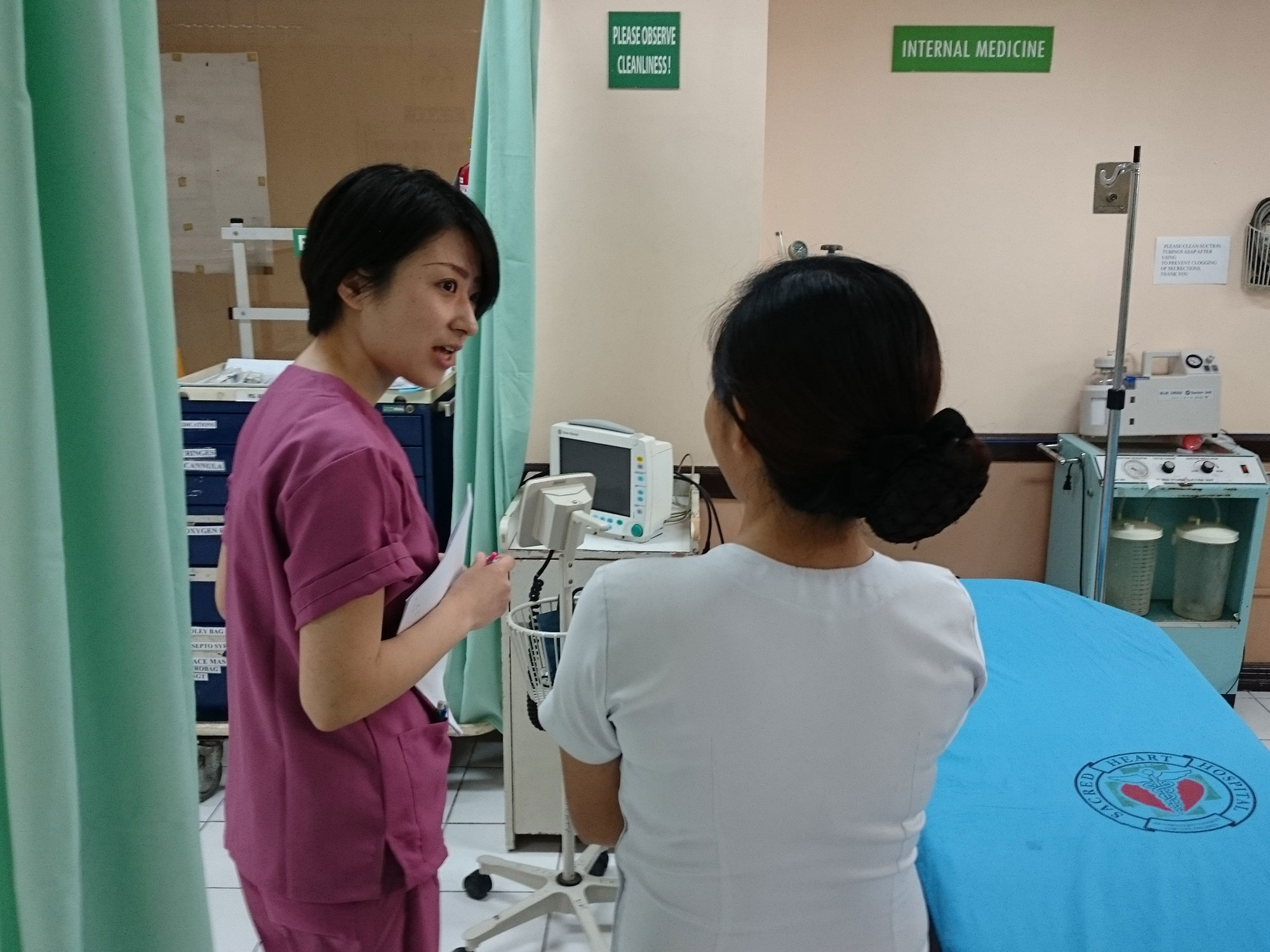 医療英語専門学校だから実践的な医療英語を最短距離で学べます。 生徒の医療職種や専門分野に合わせてロールプレイングを含めた実践的な授業で実際の医療現場の英会話を習得できます。 フィリピンの医療機関と提携しており、医療施設での現場実習・インターン・見学もアレンジ出来るほか、ボランティア活動に参加することも可能です。
